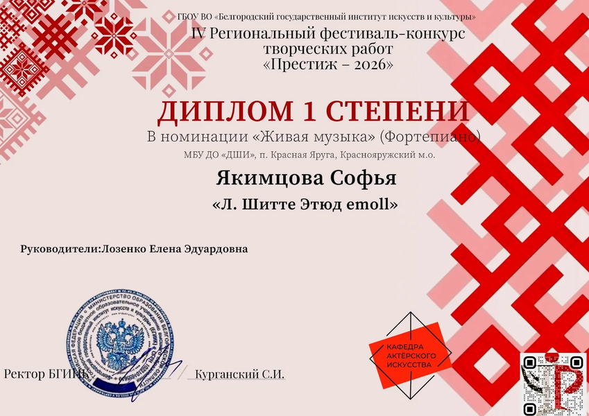 В Белгородском государственном институте искусств и культуры прошёл IV Региональный фестиваль-конкурс «Престиж — 2026»!