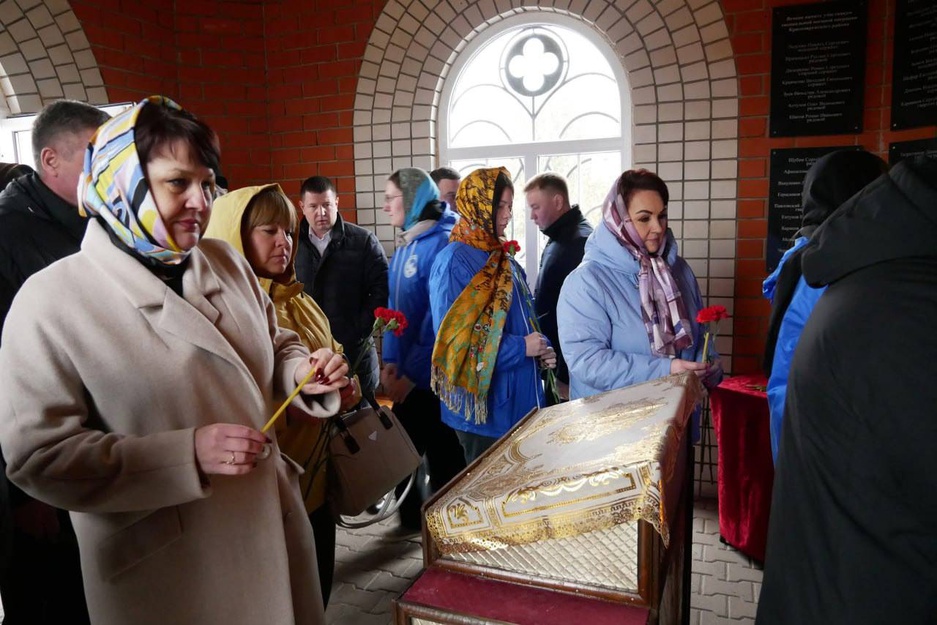 После панихиды участники почтили память погибших и возложили цветы к памятным табличкам с именами наших земляков — защитников и мирных жителей — в часовне Федоровской иконы Божией Матери.