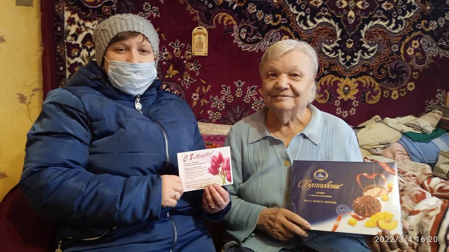 Читательницам надомного обслуживания были вручены небольшие подарки, а также сотрудники порадовали их свежими номерами периодических изданий.