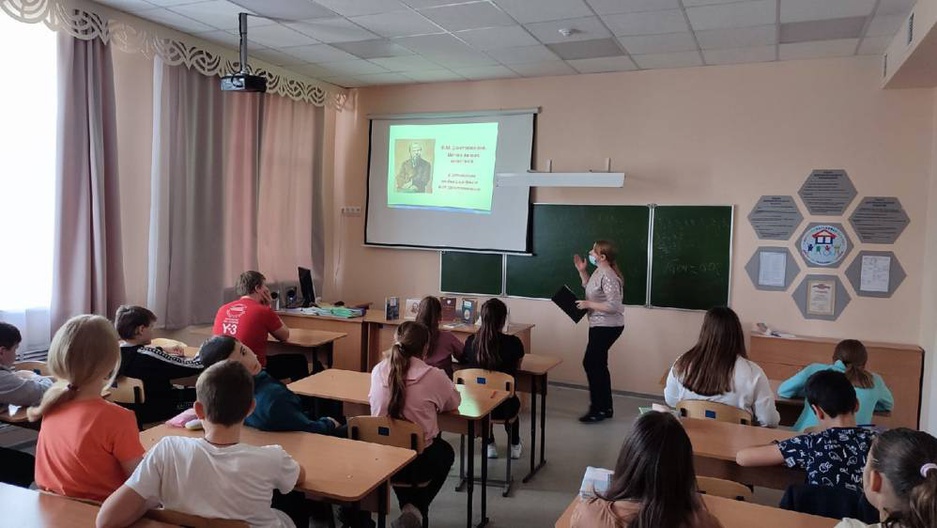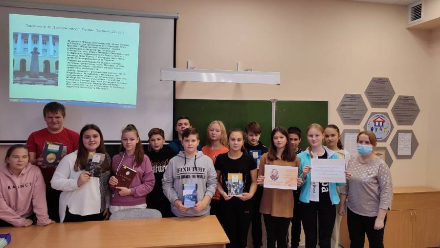 С помощью электронной презентации «Писатель на все времена» ребята подробно познакомились с биографией Фёдора Михайловича и интересными фактами из его жизни. Учащиеся узнали о литературном творчестве классика по произведениям «Бедные люди», «Преступление и наказание», «Братья Карамазовы», просмотрели буктрейлеры.