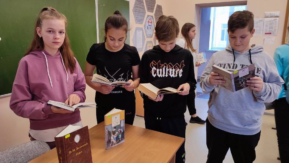 В конце мероприятия школьники познакомились с художественной литературой на книжной выставке «Мир Достоевского».