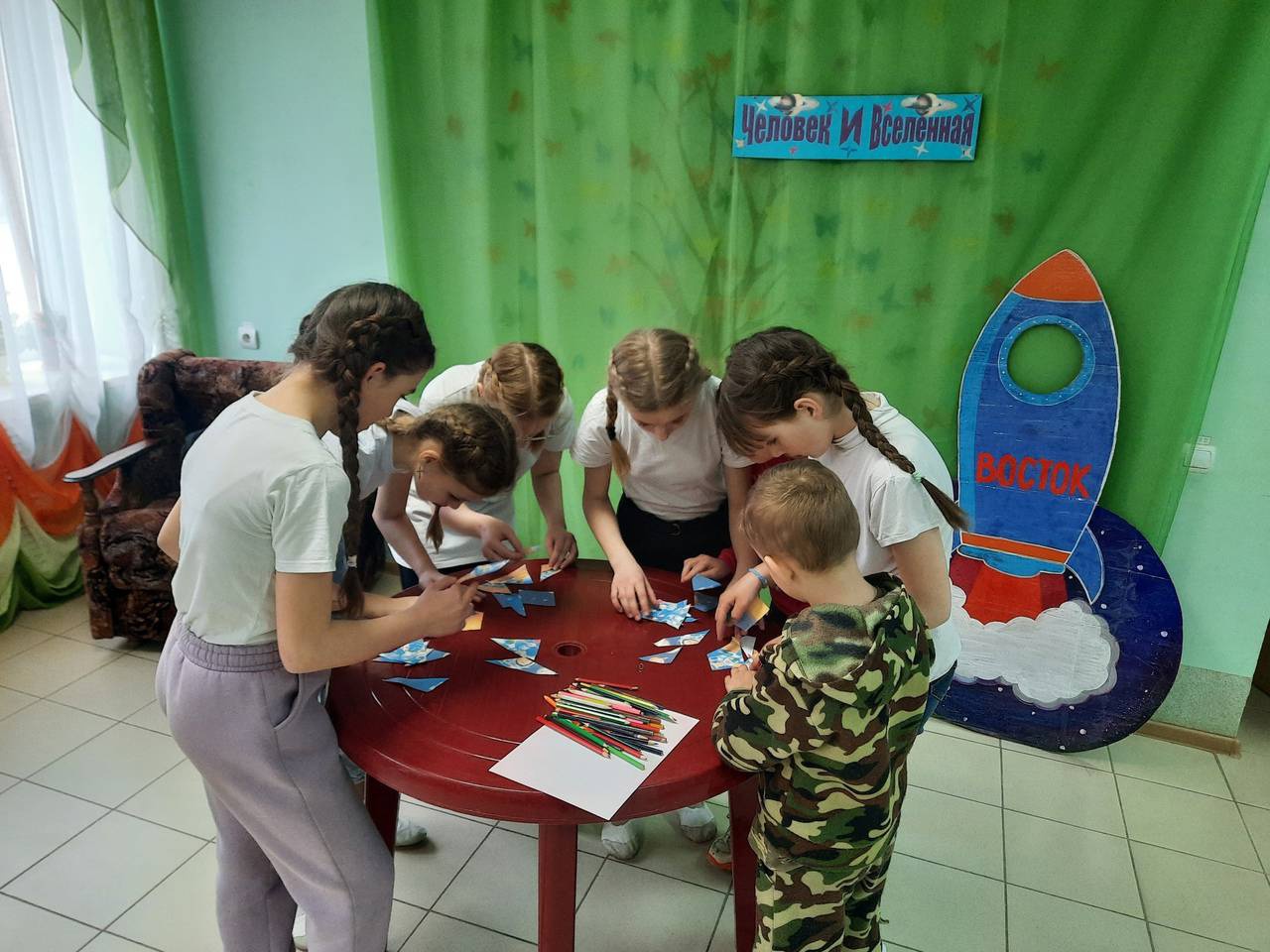 В начале встречи ребята услышали историю о первом полете человека в космос и о развитии космонавтики в нашей стране. Затем приняли участие в тематических играх и конкурсах, а также проявили свою фантазию в творческом задании - нарисовали космонавта будущего.