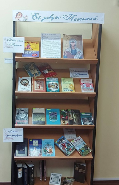 25 января 2021 года отмечается День Святой Татьяны. В преддверии этой даты сотрудники отдела обслуживания Центральной библиотеки подготовили книжную выставку «Её зовут Татьяной…», состоящей из трех разделов. В первом разделе «Тайна имени Татьяна» собрана информация об истории Дня Святой мученицы Татианы. Второй раздел представлен произведениями знаменитых современных писательниц–Татьян: Татьяны Толстой, Татьяны Трониной, Татьяны Поляковой, Татьяны Устиновой, Татьяны Веденской, Татьяны Булатовой, Татьяны Степановой, Татьяны Поляченко, Татьяны Москвиной, Татьяны Тарасовой, Татьяны Гармаш-Роффе, Татьяны Соломатиной, а также писательниц-краеведов – Татьяны Головко, Татьяны Огурцовой, Татьяны Олейниковой. В третьем разделе «Татьяны – героини произведений» собраны произведения А. Пушкина «Евгений Онегин», И. Гончарова «Обрыв», Ф. Достоевского «Подросток», А. Чехова «Чёрный монах» и пьеса «Татьяна Репина», И. Тургенева «Муму», В. Набокова «Дар», А. Арбузова «Таня», Р. Фраермана «Дикая собака Динго», М. Метлицкой «Фиалки на десерт», Анны и Сергея Литвиновых «Та самая Татьяна», Д. Емеца «Таня Гроттер и перстень с жемчужиной», поэтические произведения С. Есенина, В. Маяковского, представляющие необыкновенные образы Татьян, созданные воображением авторов. Дорогие читатели, приглашаем вас посетить нашу выставку!