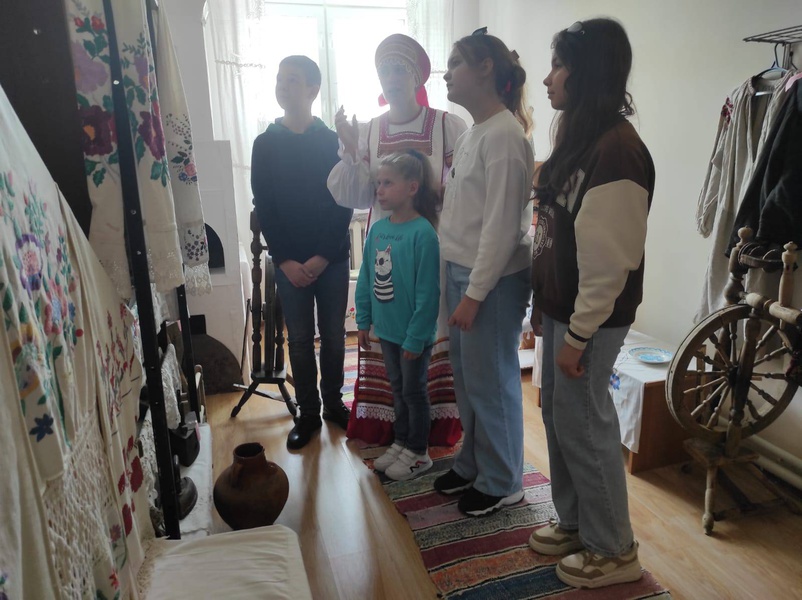 В музейной комнате всех гостей встречала бабушка Авдотья, которая приготовила для ребят много интересных историй, загадок и секретов. Она провела для ребят экскурсию по экспонатам экспозиции прошлых лет, а также познакомила ребят с традициями и обычаями, бытовавшими на территории села в давние времена.