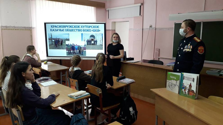 20 октября сотрудники Центральной библиотеки совместно с представителем казачьего общества Краснояружского района, Сергеем Федоровичем Воронковым, провели информационный час «Казачество на государевой службе» для обучающихся 9 «Б» класса ОГБОУ «Краснояружская СОШ».