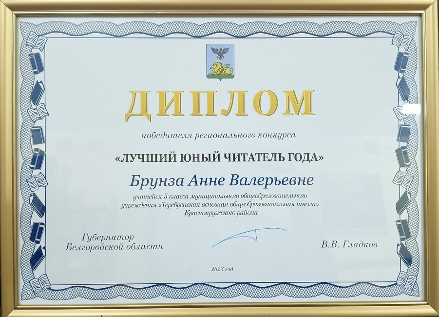 Звание лауреата от Краснояружского района в этом году завоевала читательница модельной библиотеки-филиала №9 с. Теребрено Брунза Анна, обучающаяся 5 класса МОУ «Теребренская ООШ». В текущем году Аня прочитала более 130 книг. Она считает, что книги помогают разобраться в сложных жизненных ситуациях и найти способы, как их преодолеть.