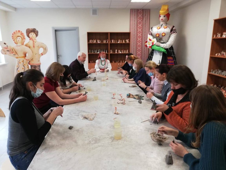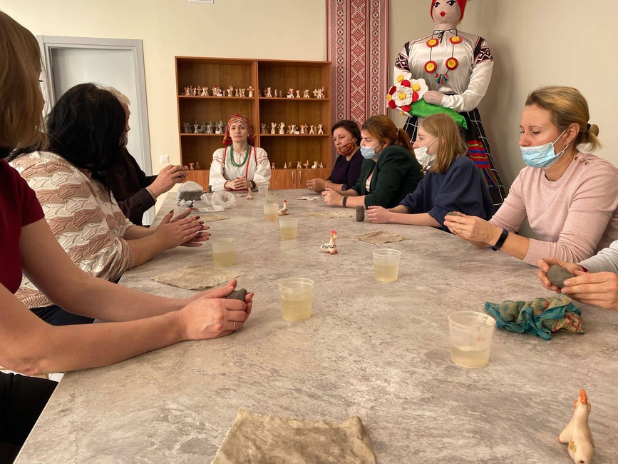 МБУК «Центр культурного развития Краснояружского района» совместно с организацией «Молодежное правительство Краснояружского района Белгородской области» организовали обучающее занятие по изготовлению Старооскольской глиняной игрушки. В рамках реализации проекта «Мобильная студия «От подмастерья до мастера», который реализуется с использованием гранта Президента Российской Федерации, предоставленного Фондом президентских грантов. 15 ноября руководители кружков культурно-досуговых учреждений нашего района побывали в городе Старый Оскол. Они познакомились с традиционным глиняным ремеслом, которым славится край. На базе Старооскольского Центра декоративно-прикладного творчеств состоялся мастер-класс от «Народного мастера России», «Народного мастера Белгородской области», мастера старооскольской традиционной глиняной игрушки Лобынцева Владимира Ивановича и руководителя образцовой студии «Волшебная глинка» Часовских Татьяны Викторовны. Все участники занятия изготовили индивидуальную традиционную старооскольскую глиняную игрушку. В рамках выездного мероприятия краснояружские мастерицы посетили мастерские, сувенирную лавку и выставочный зал Старооскольского Центра декоративно-прикладного творчеств и познакомились с работами мастеров и умельцев учреждения. Участники мастер-класса остались довольны обменом новых творческих идей и готовы к внедрению, полученных знаний и навыков в своей работе.