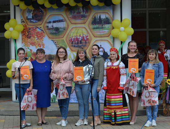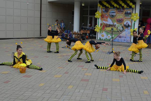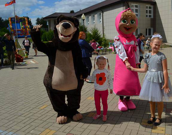 Ростовые куклы Маша и Медведь развлекали жителей и гостей села. Повсюду витало праздничное настроение: радостные лица, нарядные костюмы, веселая музыка, разноцветные столы, чудесный запах мёда и пирогов, батут, сладкая вата, электоромобили.