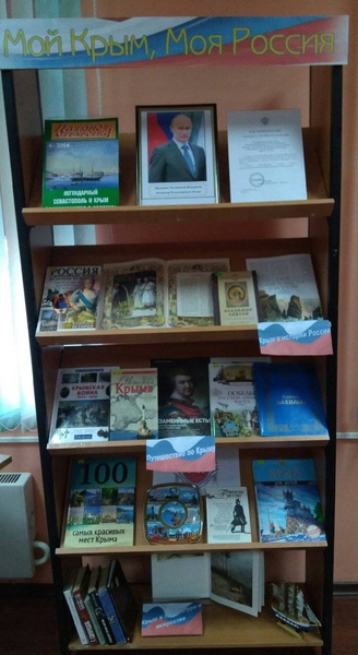 В честь исторического события – Дня воссоединения Крыма с Россией в Интерес-Центре Центральной библиотеки открылась книжная выставка «Мой Крым – Моя Россия». Она охватывает значительный хронологический период: от крещения князя Владимира в древнем Херсонесе до принятия в состав Российской Федерации Республики Крым и города Севастополя в марте 2014 года. Из раздела выставки «Крым в истории страны» читатель познакомиться с историей Крещения Руси в Херсонесе, об установлении и развитии дипломатических отношений Московского государства и Крымского ханства начиная с XV в. Центральное место на выставке занимает издание 2015 года «История Крыма», написанное высокопрофессиональным коллективом российских историков, кандидатов и докторов исторических наук, прослеживается вся история Крымского полуострова с древнейших времен до наших дней, первая в новой России подлинно научная и объективная история Крыма. Книги «Адмирал Нахимов», «История российского флота» рассказывают о Крыме как символе воинской славы, героического и трагического боевого прошлого. Чтобы познать все красоты Крыма, изучить его природу, архитектуру, разгадать все его тайны читатели смогут из второго раздела выставки «Путешествие по Крыму». Украшение экспозиции – это произведения русских писателей и художников, чья жизнь и творчество тесно связаны с Крымом: А. Пушкина, М. Цветаевой, Л. Толстого, И. Айвазовского, И. Шишкина и других. Важно понимать, что значит Крым для России и Россия для Крыма. Русские и украинцы, крымские татары всегда жили плечом к плечу, поэтому необходимо скрепить дружбу и сотрудничество народов России и Крыма, уважать национальные чувства каждого из них. Ведь сила России в единстве народов!