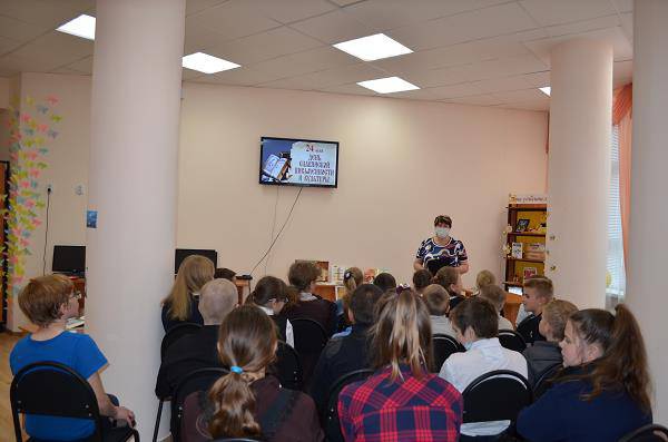 Ведущая И.К.Афанасенко рассказала ребятам об основателях славянской письменности Кирилле и Мефодии. Дети узнали, что Кирилл и Мефодий – славянские просветители, первые переводчики богослужебных книг на старославянский язык, создатели славянской азбуки. Особое внимание было уделено славянским изданиям. Школьникам рассказали, из скольких букв состояла кириллица, кто внёс изменения в азбуку, какие буквы были исключены из азбуки в 1917 году, о значении азбуки в просвещении и православии.