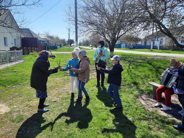 В ходе акции дети читали стихи, пели военные песни для ветеранов и вручали подарки и цветы.