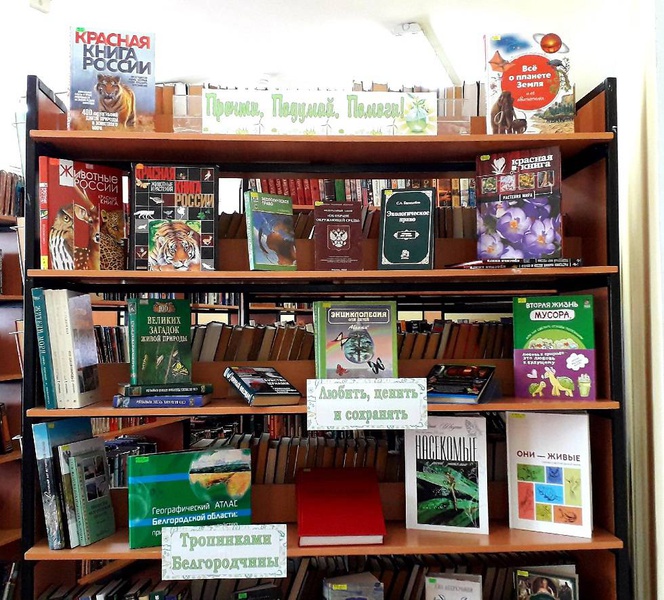 В Центральной библиотеке оформлена книжная выставка по экологии «Прочти. Подумай. Помоги!». Эта выставка обращает внимание на экологические проблемы, позволяет задуматься о бережном отношении к окружающей среде, предлагает перелистать страницы книг и увидеть удивительный мир природы.