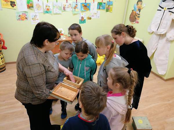 Ведущая рассказала ребятам о том, что у человека к пчёлам особое отношение. Оценив их еще в далекие времена за мёд и воск, он постепенно приблизил пчёл к своему дому, увеличив объём и ассортимент взимаемых с них услуг. Пчёлы поставляют не только мёд, прополис, пыльцу, пчелиный яд, маточное молочко, но ещё выполняют «общественные работы» — опыление высеваемых человеком растений. Если за ними внимательно наблюдать, то можно увидеть их способность обеспечивать стерильность своего жилища и хранимых в нем пчелиных продуктов, эффективно противостоять жаре и холоду, различным болезням и вредителям, прочим невзгодам, которые шлёт любому живому существу окружающая среда.