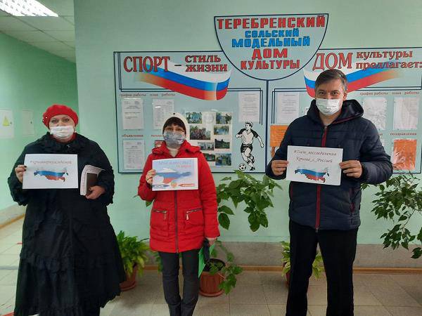 Работники Теребренского дома культуры провели акцию, посвященную Дню воссоединения Крыма с Россией.