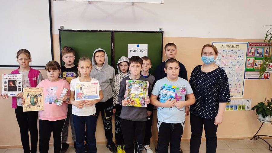 Дети посмотрели видеоролик, посвященный Дню родного языка. Библиотекарь познакомила учащихся с понятием «фольклор», рассказала, какие жанры относятся к устному народному творчеству. Затем дети вспоминали пословицы и поговорки русского языка, пытались заменить фразеологические обороты словами-синонимами. Ребята приняли участие в конкурсах «Доскажи словечко», «Назови одним словом». В конкурсе «Говори, говори, да не заговаривайся» школьники показали свои навыки владения русской речью.