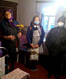 Также волонтёры посетили 92-летнюю жительницу села, вдову ветерана ВОВ Е.И. Крисанову и оказали ей физическую помощь.
