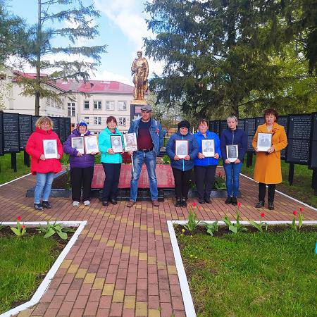 На протяжении всего дня жители приходили к памятнику, чтобы возложить цветы и отдать дань уважения землякам-защитникам и всем тем, кто отстоял Великую Победу.