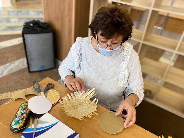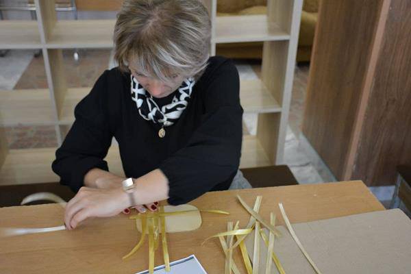 Под руководством мастера Дома ремёсел Лилией Зерновой участники мероприятия изучали изготовление подставки под горячее самым легким и знакомым с детства шахматным плетением. Работники культуры повышают свое мастерство в декоративно-прикладном искусстве.