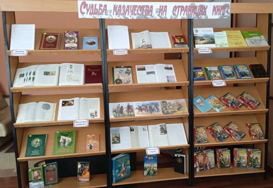 Образ казака находит отражение во многих произведениях литературы и искусства. Это народные казачьи песни, думы, сказки и легенды. В Центральной библиотеке оформлена книжная выставка «Судьба казачества на страницах книг», с помощью, которой посетители совершат путешествие в прошлое, к истокам казачества. Судьба казачества - это трудные, но славные страницы истории России. Казаки участвовали практически во всех войнах в защиту и во славу Отечества. Выставка состоит из 5 разделов.