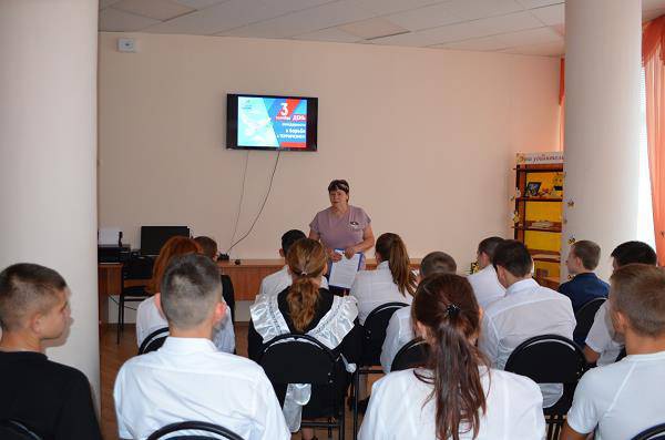 В настоящее время для всего человечества стоит острая проблема борьбы с терроризмом, так как он несёт с собой смерть. Страх и ужас вызывают у людей действия террористов. Беседа была направлена на то, чтобы сформировать у обучающихся представление о терроризме, акцентировать их внимание на необходимости проявления бдительности, содействовать формированию толерантности и профилактике межнациональной розни и нетерпимости, формированию чувства милосердия к жертвам терактов (на примере Беслана).