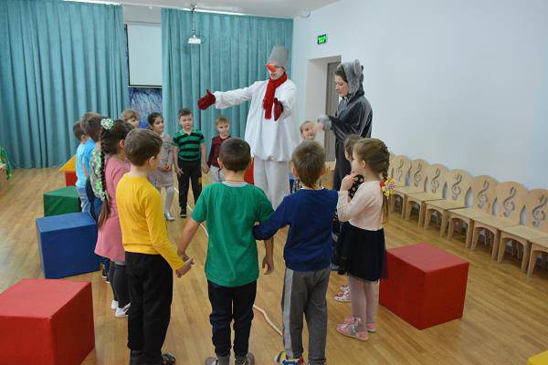 Праздник проводился в виде эстафеты. Перед началом соревнований участники разделились на 2 команды: мальчишки «Снеговички» и девчонки «Снежинки».