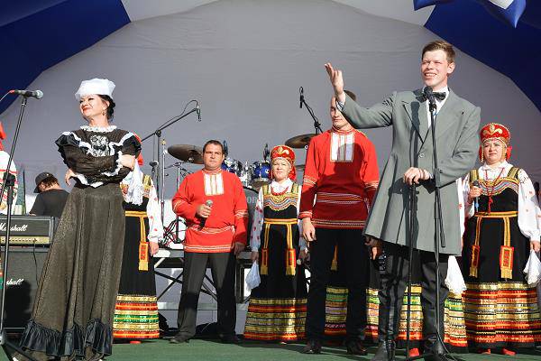 На центральной площади п. Красная Яруга весь вечер выступали солисты и творческие коллективы художественной самодеятельности района. В своих композициях они прославляли Отечество и свою малую родину. Сюда приехали и артисты из других регионов.